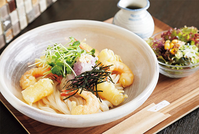揚げたて天ぷらをのせた期間限定のぶっかけうどん