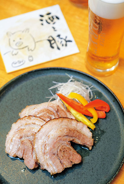 チャーシューを酒のアテに今宵スタンドバーで乾杯