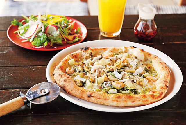 浜辺のピッツェリアで魚介たっぷりの一枚を