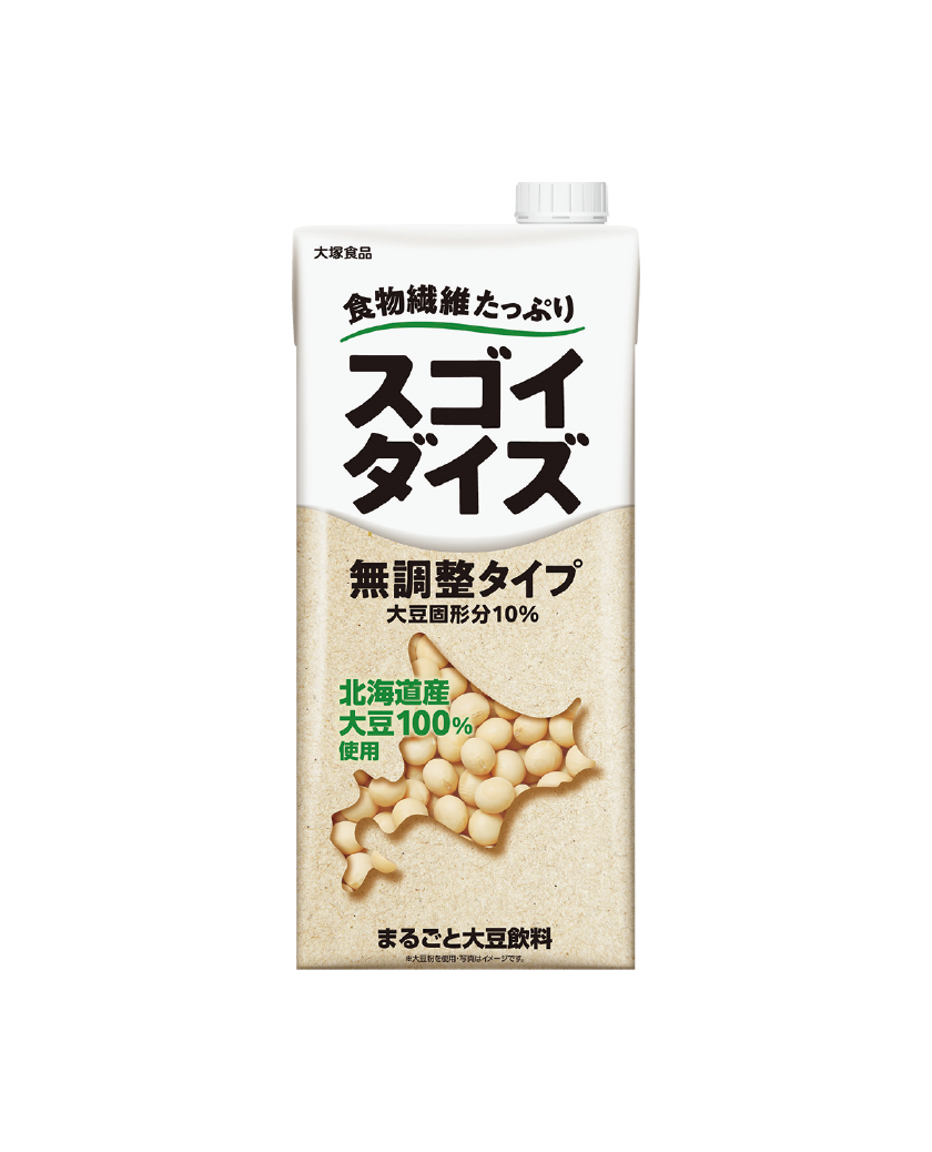 20年以上愛される「スゴイダイズ」は、独自の製法により北海道産大豆を丸ごと飲料にしており、大豆のうま味を生かした濃厚な味わいと、滑らかな口当たりが特長。タンパク質や食物繊維といった栄養素がしっかりとれるのも◎だ。今秋にお目見えの新パッケージでお届け。