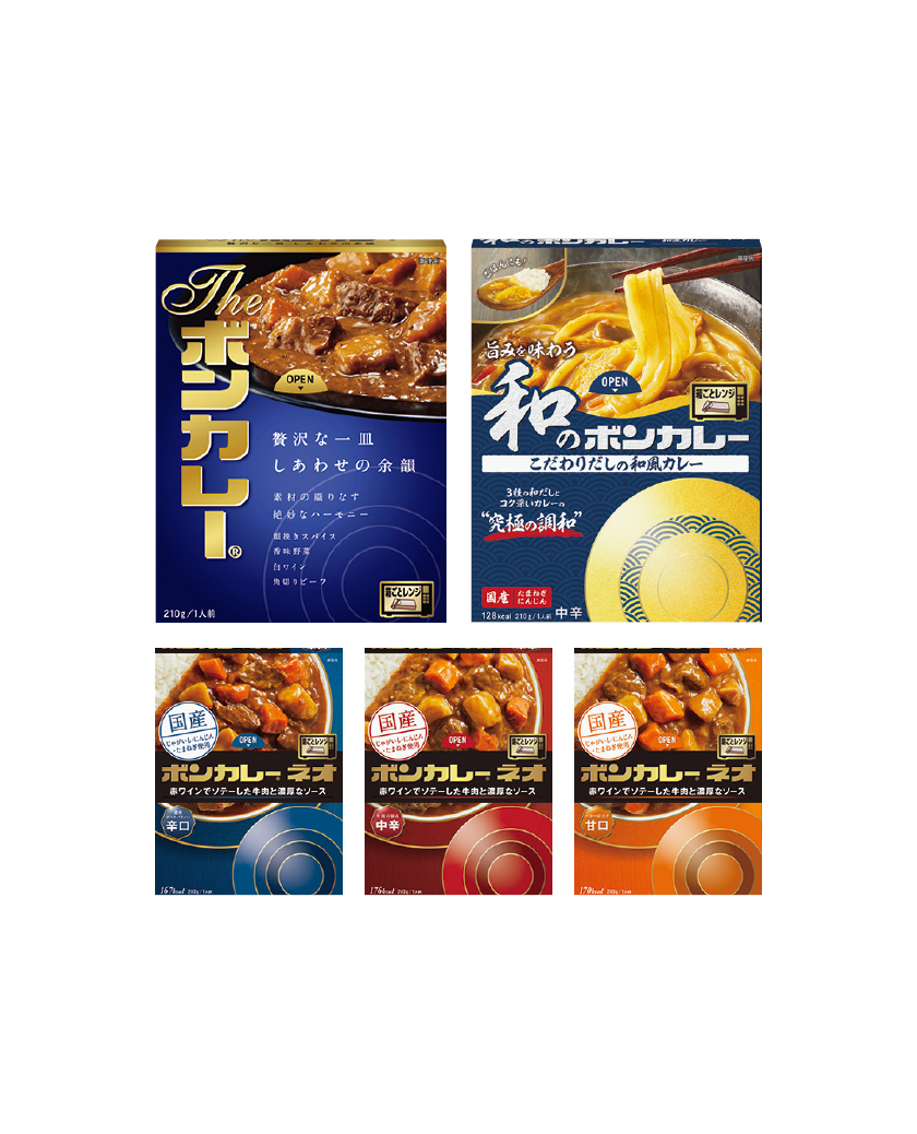 今秋、ボンカレーシリーズより「旨みを味わう和のボンカレー」が新登場。かつお節・昆布・煮干しの和だしとコク深いカレーが調和しており、麺類とも相性抜群だ。こちらに、「ボンカレーネオ」の甘口・中辛・辛口、「Theボンカレー」を加えた計5種類(各2個)をお届け。