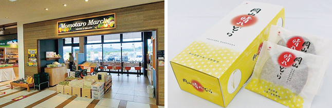 果物の有名な岡山ならではの商品を扱う産直マルシェやベーカリー、高速道路初出店の『サンマルクカフェ+R』が登場した。桃太郎にちなんだ、鬼の角に見立てたお菓子の刺さった写真映えする赤鬼ソフトクリームも人気。