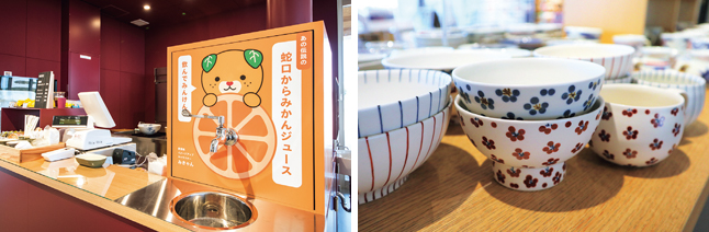 瀬戸内海の景色を一望できるSA。 世界初の三連つり橋である来島海峡大橋やミカンの木をイメージした、館内のオブジェも見どころだ。 今治焼豚玉子飯といったご当地グルメや、大三島産レモンで作るお土産、定期的に開催される愛媛の特産品を販売するイベントも要チェック。