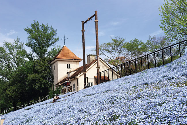 八重桜やソメイヨシノなど3品種の桜が約400本咲くほか、菜の花やチューリップ、ネモフィラといった花々が園内をにぎやかす。