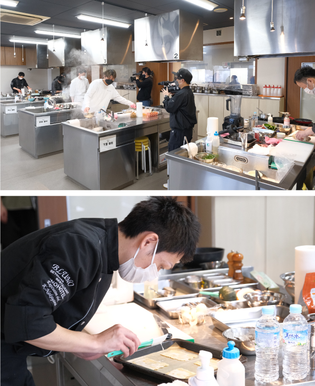 調理の制限時間は45分。開始と同時に聞こえる包丁の小気味良い音が、料理への期待感を一層そそらせる。