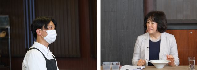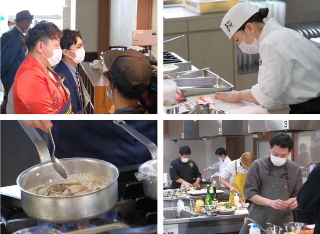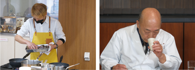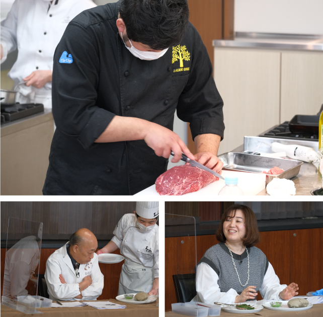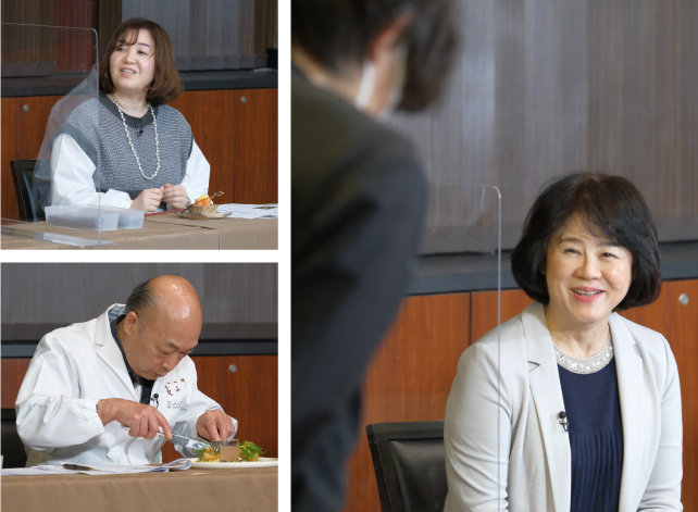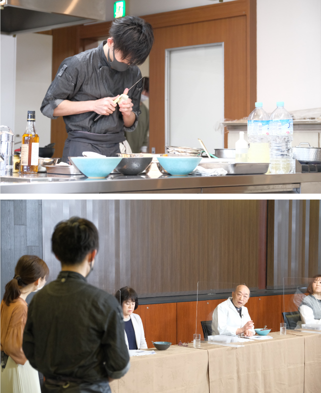 広島ホームテレビ・坪山奏子アナウンサーによる進行のもと、いよいよ熱き闘いがスタート! 試食審査員を務めるのは、会場である広島酔心調理製菓専門学校校長・原田優子さん、エリアを代表する料理人『日本料理 喜多丘』の北岡三千男さん。そして、Wink編集部・つーはんも参加! さまざまな観点から評価するこの3人を、気鋭のシェフたちは一体どんな料理で楽しませてくれるのか!?
