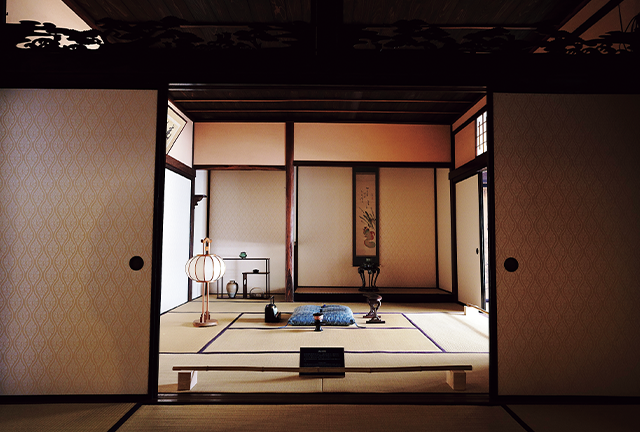 銀採掘の「現場」を見学した後は、往時の「暮らし」を知ることができる場所へ。江戸時代の風情あふれる大森地区の町並みに建つ『熊谷家住宅』は、国の重要文化財に指定されている大屋敷。総漆喰の真っ白な外観に目を奪われます。熊谷家は鉱山経営、金融業、酒造業のほか、大森代官所の掛屋・郷宿・御用達なども手掛ける、石見銀山で最も有力な商家でした。現在も季節や行事に合わせて座敷の建具や敷物、床飾りを替える「しつらい」を行い、訪れる人に当時の栄華や日本住宅の美しさを伝えています。