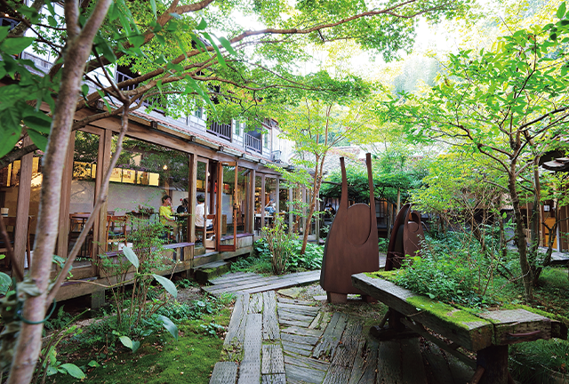 世界遺産「石見銀山」に本社・本店を構えるライフスタイルショップ『石見銀山 群言堂』。300坪の中庭があるゆったりとした空間には、アパレルをメインに素材や使い心地にこだわったオリジナル商品と、全国からセレクトした生活雑貨を販売。併設するカフェでは、県内産の食材を使用したランチや旬のスイーツを楽しめます。