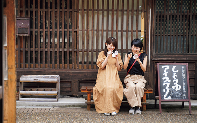 120余年にわたって醤油を造り続ける醸造蔵『岡茂一郎商店』で人気の、牧場の搾りたてミルクとコラボしたアイスクリーム。ハートマークのアイスが、愛情運を高めてくれるかも!?