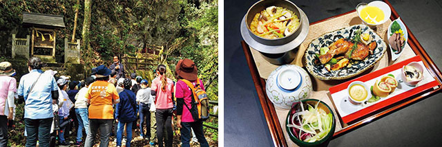 瀬戸内海産カキの殻を肥料にして育てられた〈里海米〉の釡飯がついた御膳1,530円(体験付き)。
