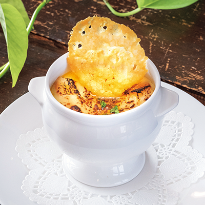 神明鶏のオニオングラタン風プリン 550円