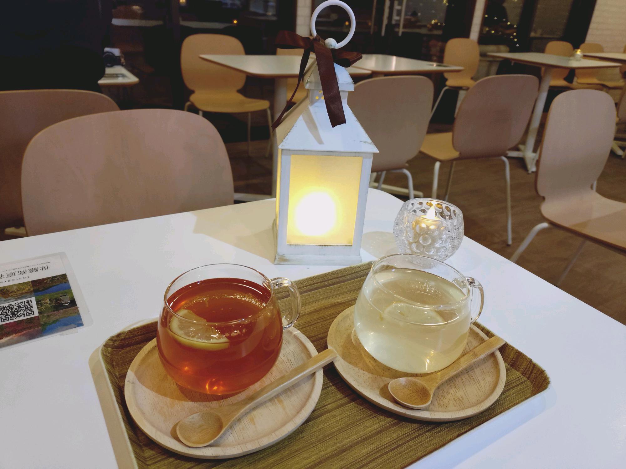 温かいグルメやフードも味わいたいときは、園内の食事処『そらのキッチン』へ。『世羅高原農場』で採れたトウモロコシを使用したコロッケやホットココアなどがありました。今回チョイスしたのはクラフトコーラ600円とハチミツのやさしい甘さが広がる瀬戸内ホットレモン450円。クラフトコーラは『さいねい農園』のクラフトコーラシロップをお湯で割ったもの。シナモンなどのスパイスが体の芯を温めてくれます。