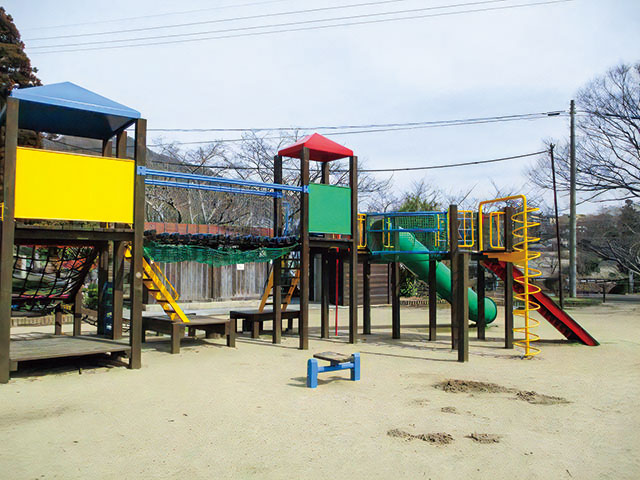 園内には、滑り台などを備えた複合大型遊具を設置。