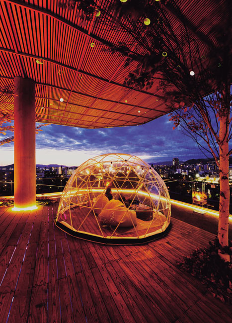暖かいこたつでくつろぎながら景色を楽しむ