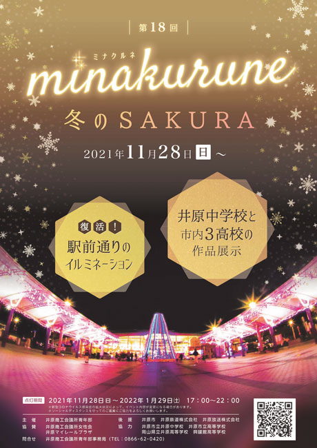 冬の井原駅前を華やかに彩るイルミネーション