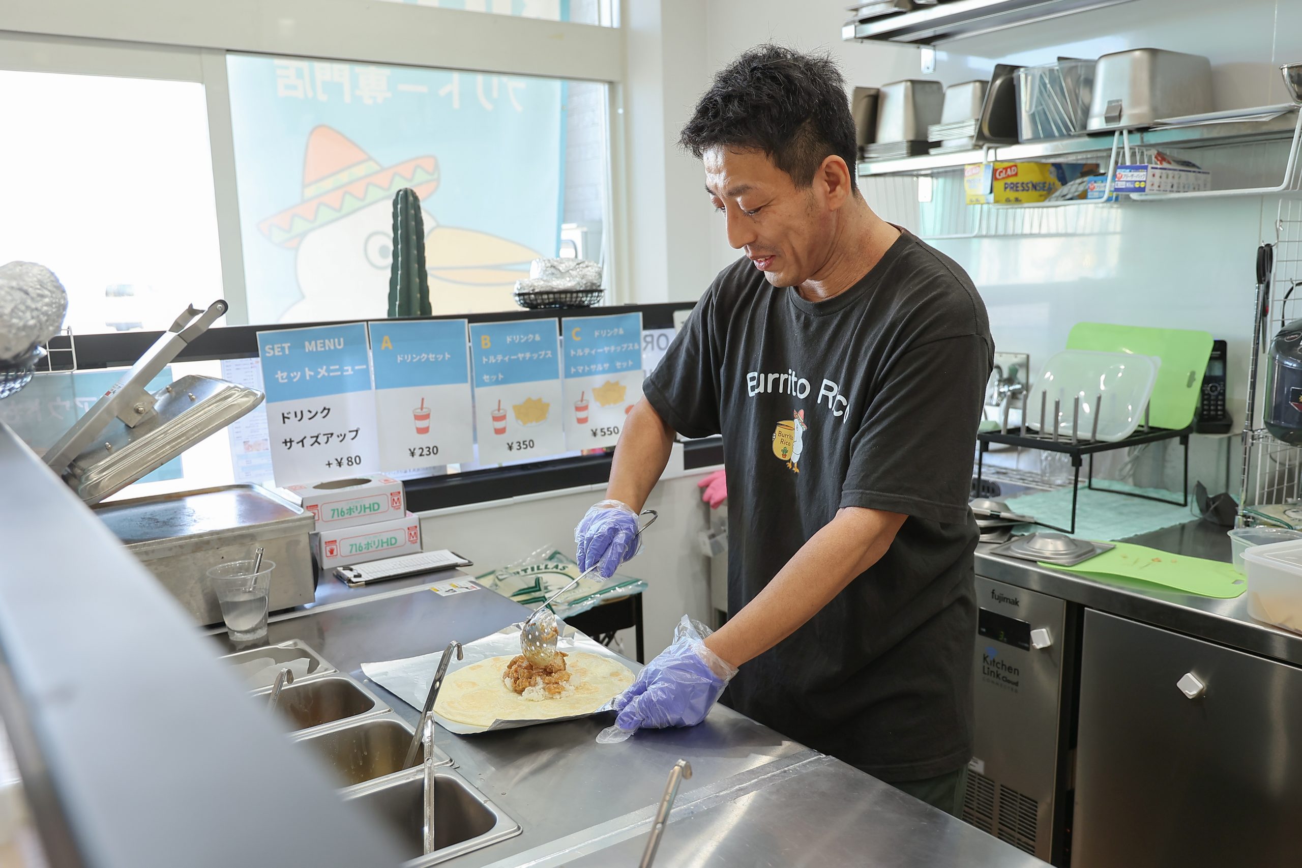 福山市にブリトー専門店が登場! ブリトーとは、トウモロコシで作るトルティーヤに肉、豆などをのせて巻くメキシコ発祥の料理。元祖はシンプルな具材だが、こちらで提供するサンフランシスコ風は、小麦粉が原料のフラワートルティーヤを使用したボリューミーなスタイルが特長だ。