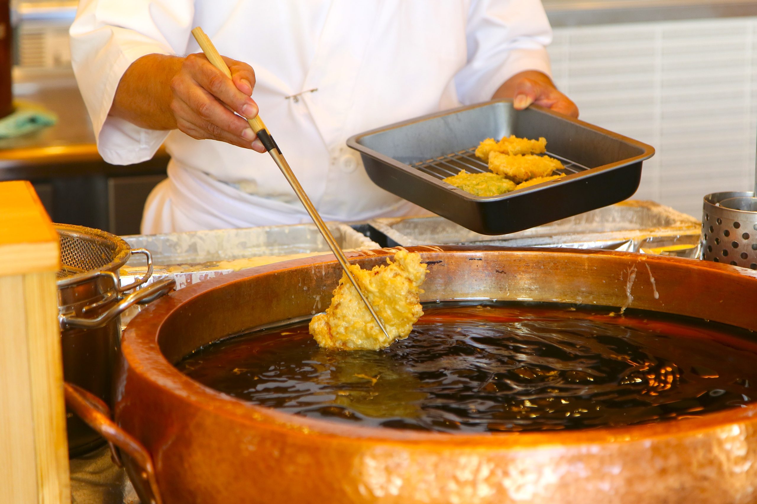 岡山県を中心に展開する天ぷら専門店が福山市にオープンした。こちらの天ぷらは博多スタイル。カウンター越しに調理している姿を見ることができ、ライブ感を楽しめるのが特長だ。ひと品ずつ提供されるので、揚げたてを頬張れるのも魅力。