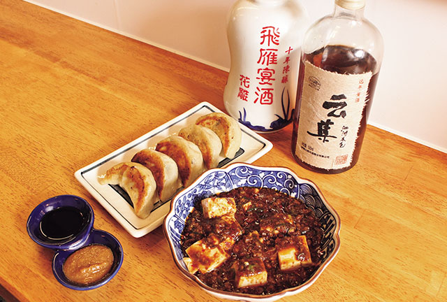 夜は定番のギョーザやエビチリなどの小皿をアテに、飲みやすい炭酸割りの紹興酒で乾杯しよう!