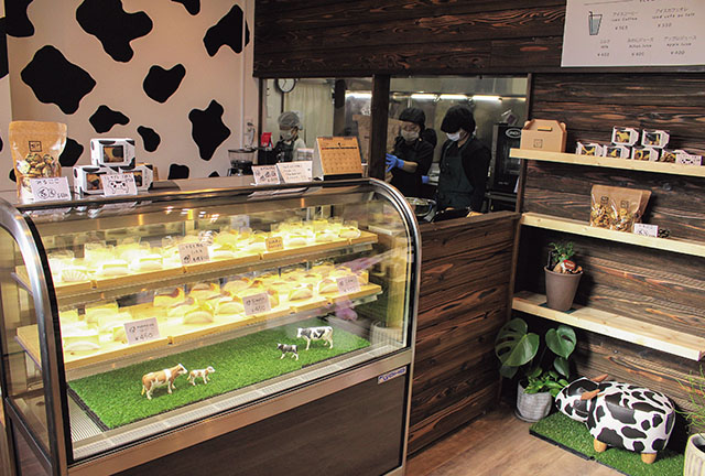 濃厚ながらもさっぱりとした後味が特長のケーキは、チョコレートを掛け合わせた牛柄のケーキ、チーズの濃厚さが際立つベイクドタイプのクラシックチーズケーキ、低温で蒸し焼きにしたシンプルな味わいの北海道チーズケーキの3種を用意。