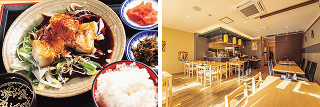 ランチタイムの人気メニューは、北海道で親しまれる鶏の唐揚げ・ザンギ入りのスープカレーだ。