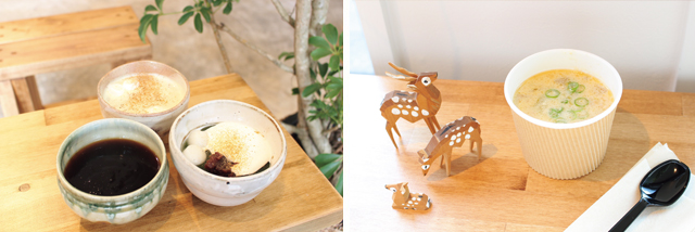 季節の移ろいに合わせて、くず湯やスパイス入り豆乳ラテなど、体調を整えることを目的としたドリンク・デザート・スープを提供している。
