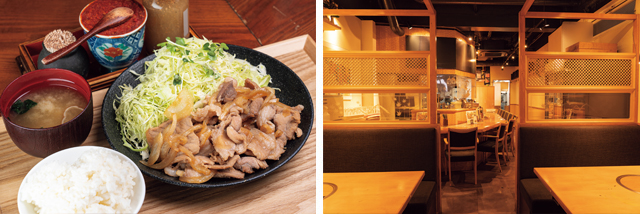 昼は豚料理専門店、夜は焼肉店となるこちらでは、ランチタイムにのみ提供される熟成三元豚のトンテキが人気!
