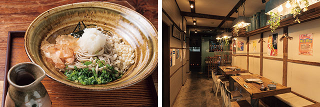 地元へ戻りオープンさせたこちらでも、ソバの実の殻を除いて製粉した白さが特徴の「江戸そば」を提供する。