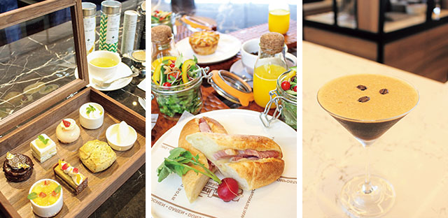 メニューはホットサンド、サラダ、キッシュといった朝食メニューをはじめ、シェラトンアップルパイ、エスプレッソを使ったカクテル、パティシエ特製スイーツ、軽食などを提供する。