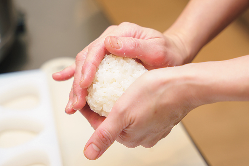 おむすびは米の種類を広島県産コシヒカリと、北広島町大朝産ブランド米〈わさの舞〉から選べ、瀬戸内海産のりを自分で巻いて頬張るスタイルだ。