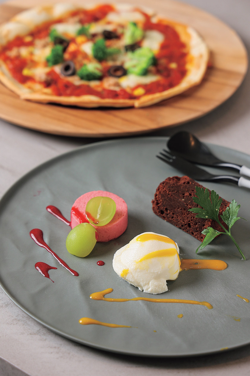 肉料理や魚料理、ピザやパスタをはじめとするアラカルト、手頃なセットメニューやお酒に合う一品など豊富に用意する。