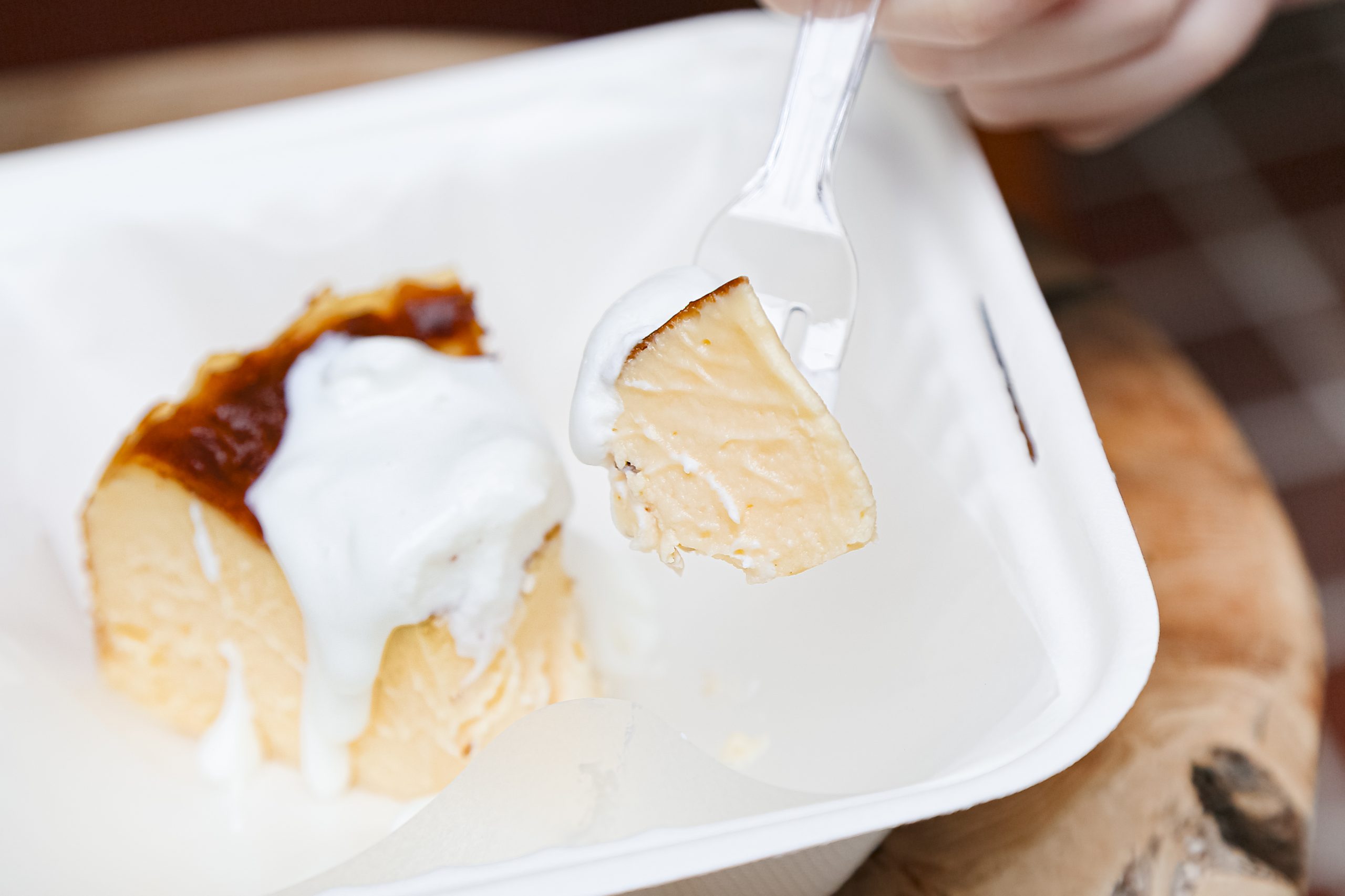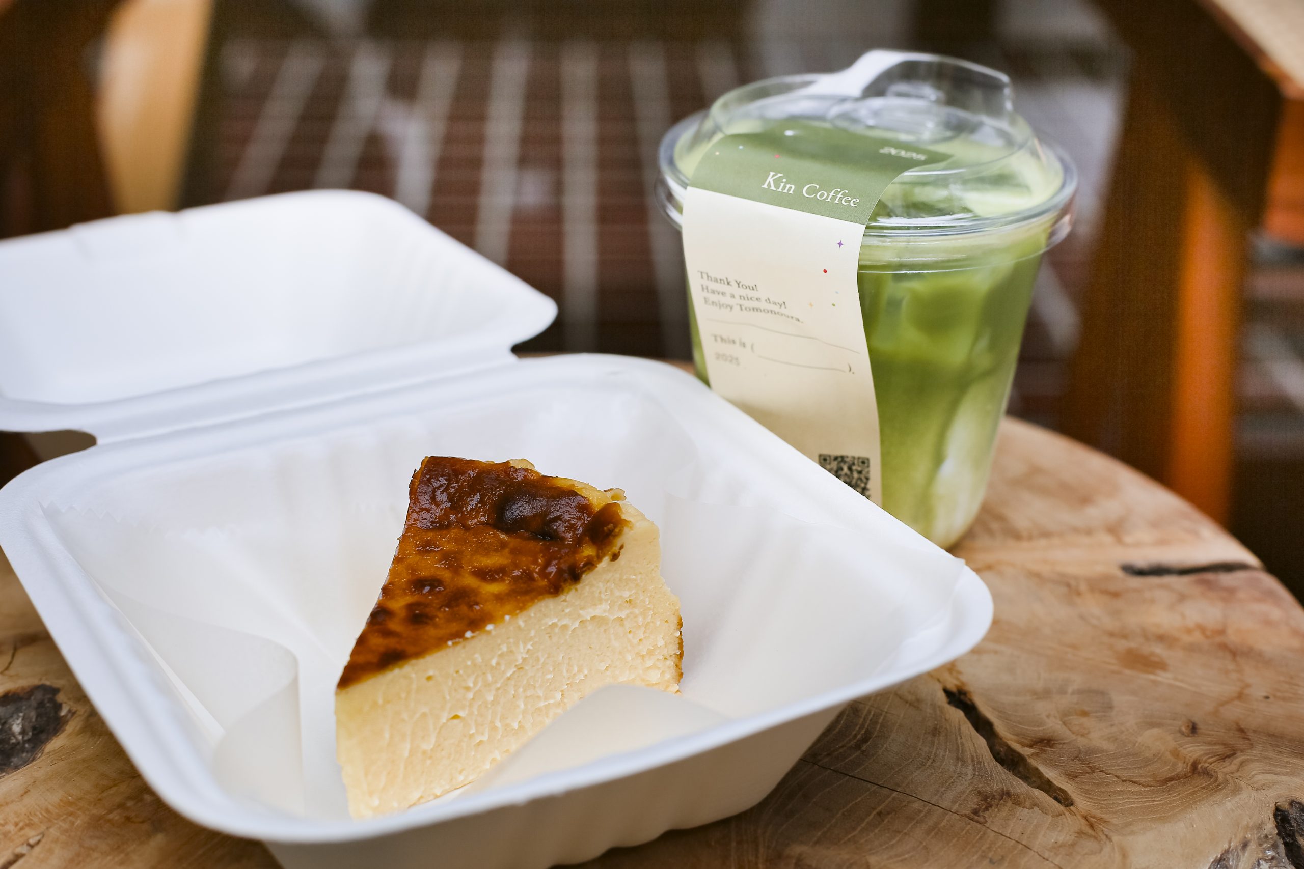 滑らかな舌触りが特長のプレーンチーズケーキ600円。甘さ控えめに仕上げられているので、食べやすいのがうれしい。生クリームをトッピングすることも可能だ。ほか、抹茶チーズケーキや黒胡麻チーズケーキ、マドレーヌがスタンバイ。抹茶ラテ700円は、注文が入ってから抹茶をたてており、豊かな風味を感じられる。ミルクはえん麦を原料としたオーツミルクやソイミルクに変更できるため、好みでチョイスしよう。バニララテ700円やココア600円、さつまいものパウンドケーキ600円といった季節限定品も登場する。