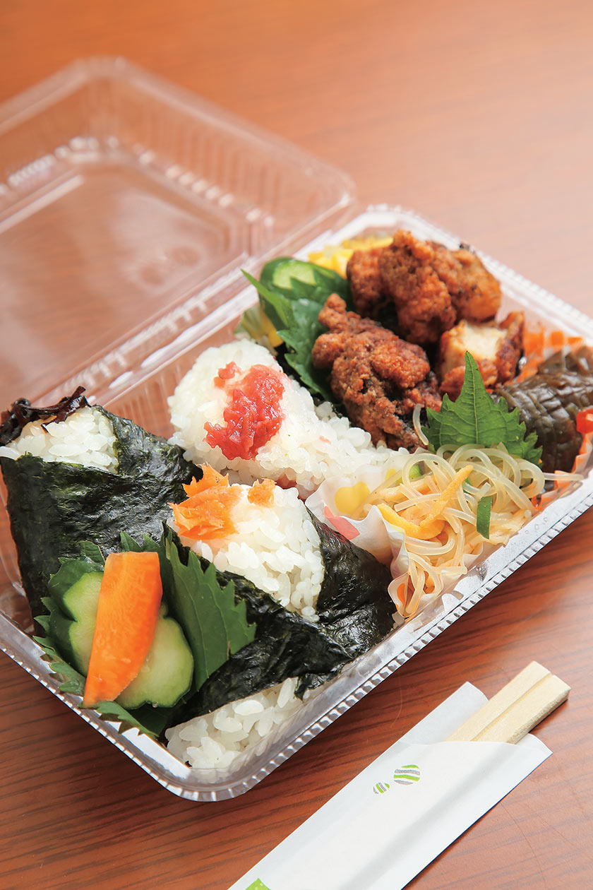 地元産の米〈にこまる〉をガス釜で炊き上げ、ふっくらと握ったおむすびは、6種類の具材から選べるのがうれしい。