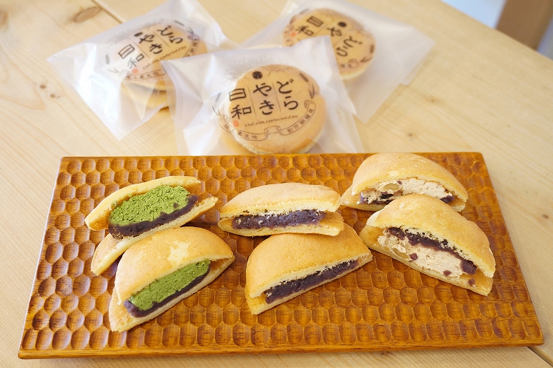 どら焼きは営業日当日の朝、一つひとつ手焼き。生地にもち粉をたっぷり配合し、しっとり&もちもちな食感に仕上げてある。中に挟む素材も手作りで、北海道産小豆を用いたあんこ、茶葉から抽出したアールグレイクリーム、ゴマを煎って香ばしさを引き立てた黒ゴマクリームなど、おいしい品を届けるための手間ひまが随所に。