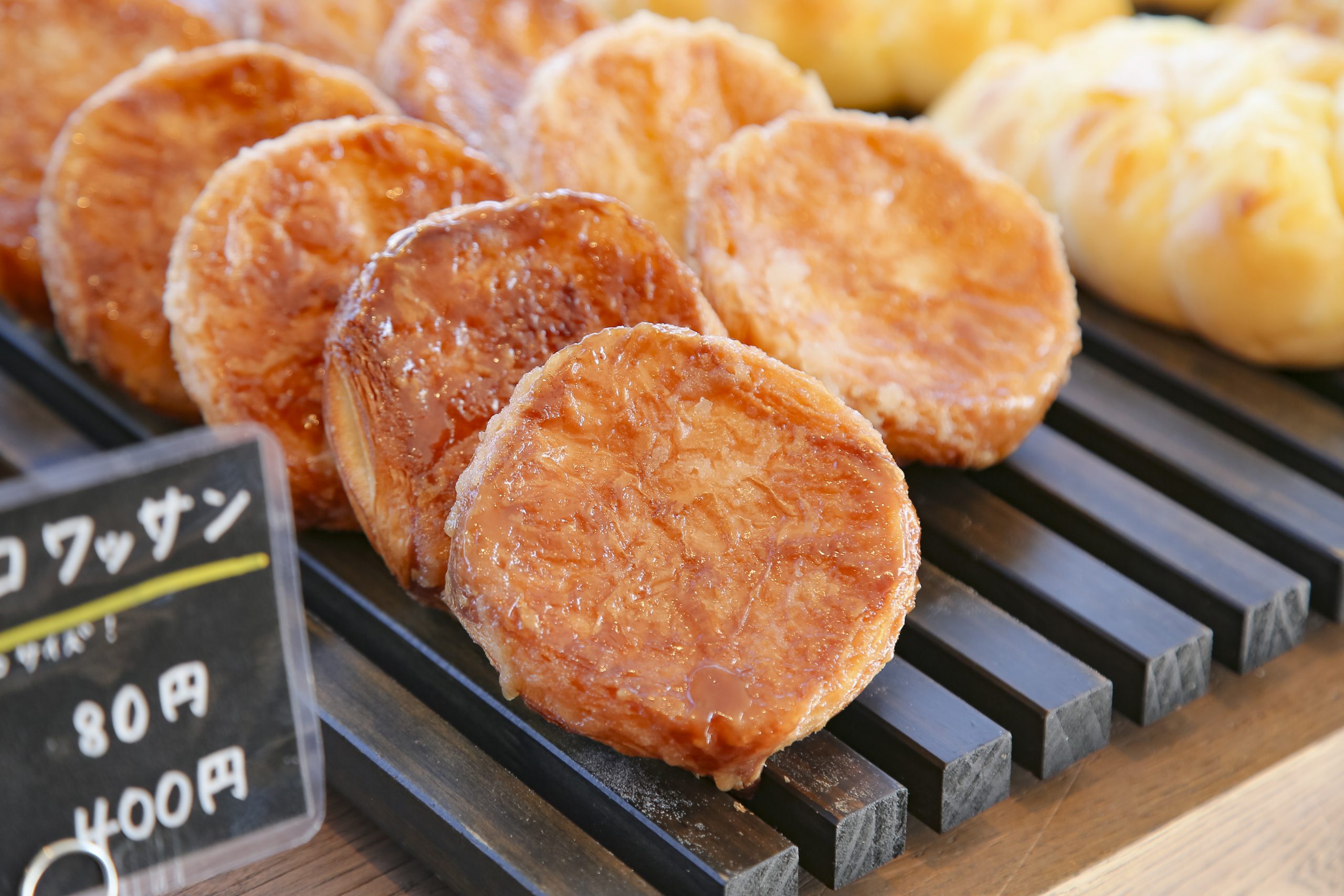 そのほか、焼く前に粗塩をかけて甘みを引き締めたクイニーアマン180円や、チョコレートの甘みを存分に味わえる米粉チョコぱん260円といった菓子パン、府中市のソウルフードである府中焼きを再現した、1日12個限定の「府中焼きバーガー」380円も見逃せない。今後、新作も登場する予定なので、楽しみに訪れて。