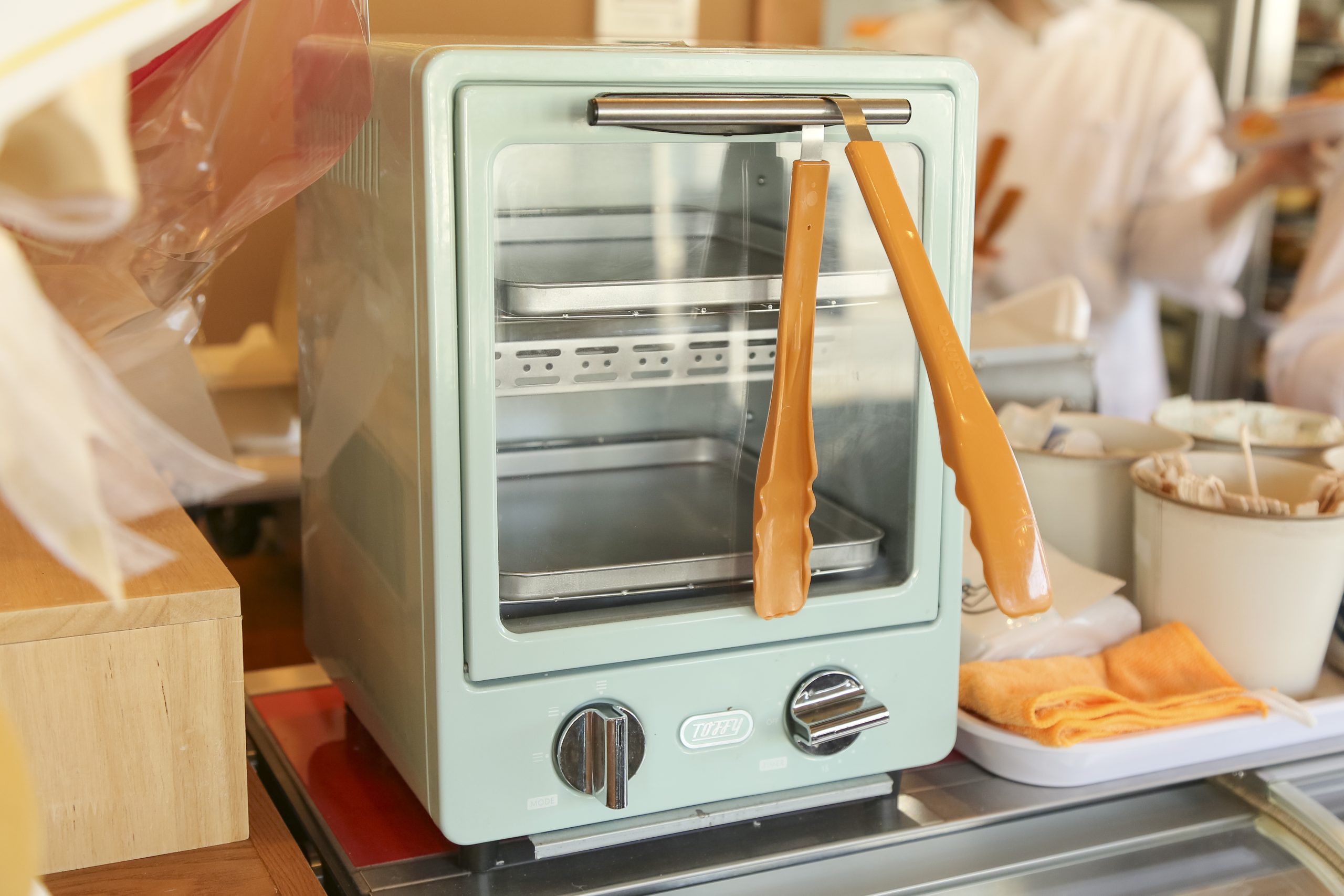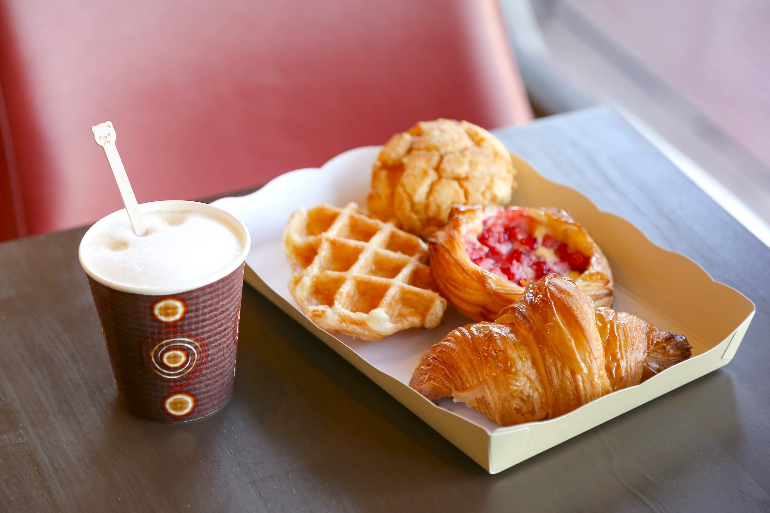 リラックスしながらパンを堪能したいときは、奥のイートイン席へ。トースターが用意されており、リベイクできるのもうれしい。甘めのパンとマッチするオリジナルブレンドのコーヒー270円といったドリンクも一緒に注文しよう。