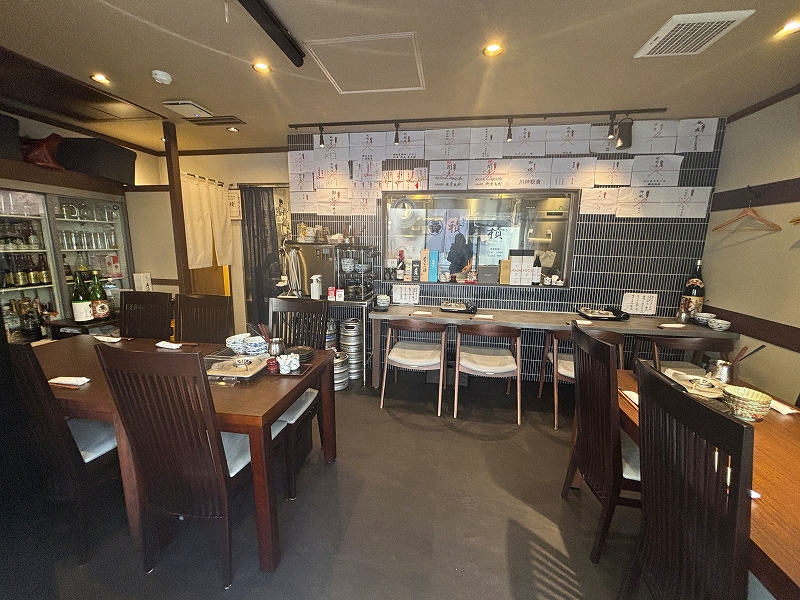 カウンター4席、6人掛けのテーブル1卓、4人掛けのテーブル1卓を用意。10人から貸し切りにも対応する。満席になることが多いため、事前に席を予約してから来店すると安心だ。