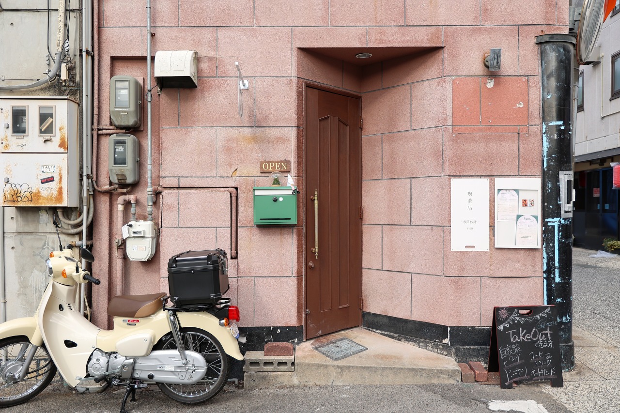 薄いピンク色の外観が目印。朝8時からオープンしているので朝ごはんとして利用したり、尾道の途中でふらっと立ち寄ったりするのも◎。