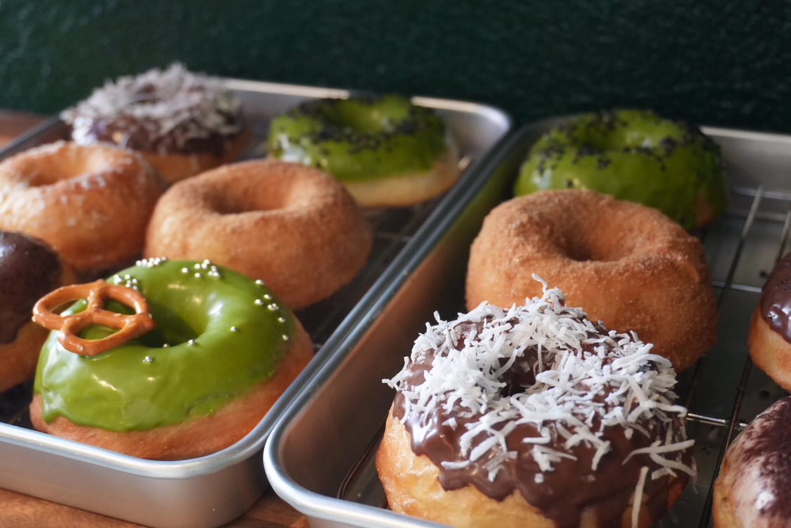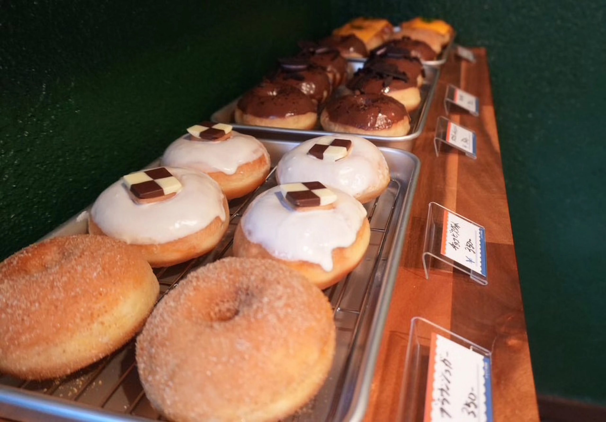 店内の一角には、手作りのドーナツもずらり。北海道産強力粉やてん菜糖を使用しており、やさしい甘みが広がる。日替わりで約10種類が並ぶが、午前中で売り切れるほど人気なので店のインスタグラムから予約しておくのもオススメ。イートインもテイクアウトもOK。