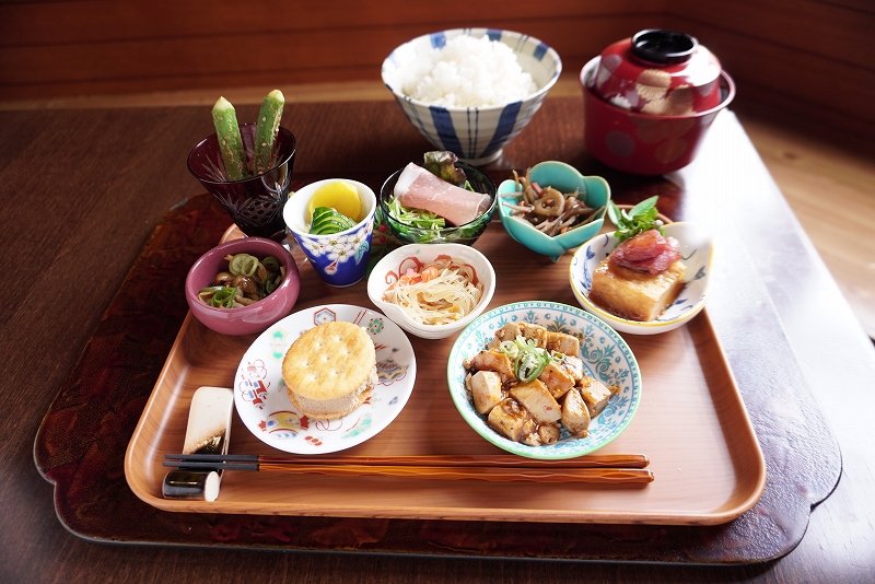 約10種類がそろうランチメニューの中でも一番人気は、おきう定食。ご飯とみそ汁に、日替わりの小鉢が9種類も付いて1,000円という、お財布に優しい価格設定だ。彩り豊かな器に盛られた料理は一つひとつが手作り。この日登場した麻婆豆腐や、煮物、和え物、サラダなど、いろいろな品を少しずつ味わえるのがうれしい。