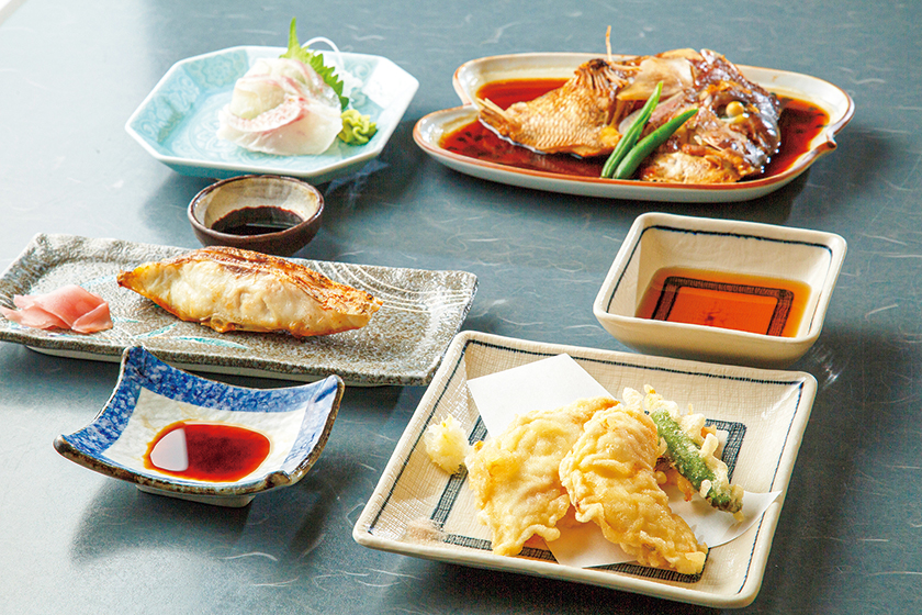 おすすめは、名物の鯛料理をあれこれ味わえる定食だ。