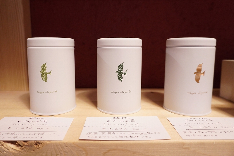 こぢんまりとして和める空間に、カウンター席、テーブル席、小上がり席の全7席を用意。店で取り扱う銘柄の茶葉が販売されるので、自宅用に買って帰るのもいい。