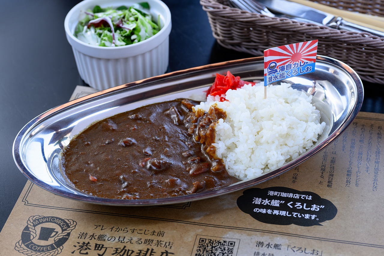 もう一つの注目メニューが、「呉海自カレー」。海上自衛隊呉基地の船艦などで実際に食べられているカレーを再現した、呉名物のご当地グルメだ。この店では、潜水艦「くろしお」の味を再現した、くろしお特製“広島風”柔らか牛筋カレー1,250円を提供。コラーゲンたっぷりの牛すじ肉を使い、甘さの中にピリッとした辛さがきいた一皿になっている。