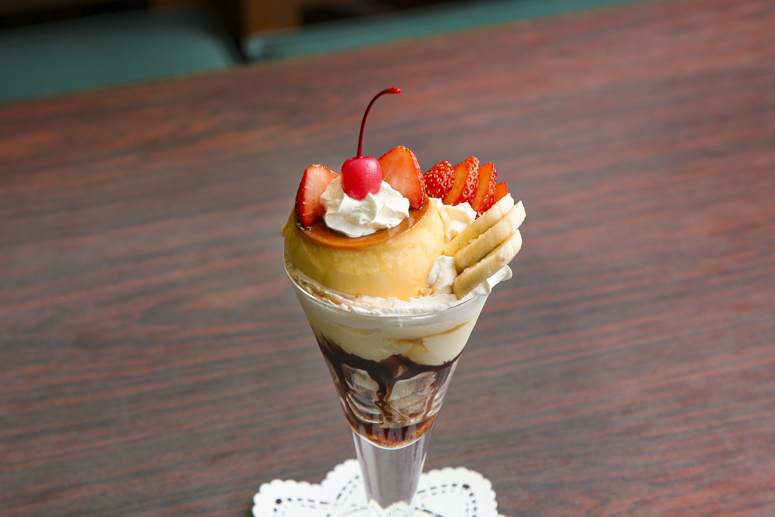 コーヒーカップや皿、カトラリーといった食器類もほとんどが引き継いだ品で、大切に手入れされてきたものばかりだ。懐かしさと新しさが調和する空間で、尾道らしさを感じるナポリタン、継承したレシピで作るミックスジュース、イチゴをネコ耳に見立てたキュートなプリンパフェといった品々を堪能あれ。