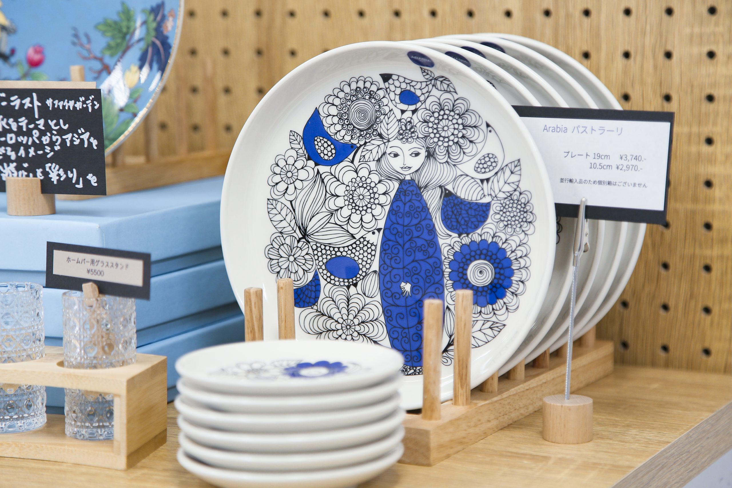 ハンガリーの文房具メーカー『ICO』のスティックボールペン5本セット660円。カラフルな見た目だが、インクの色は全て青色というユニークな商品だ。フィンランドを代表する陶芸家エステリ・トムラのデザインが施された「ARABIA パストラーリ」3,080円~。古代ギリシャのラブストーリー『ダフニスとクロエ』をモチーフに描かれており、繊細な模様が目を引く。