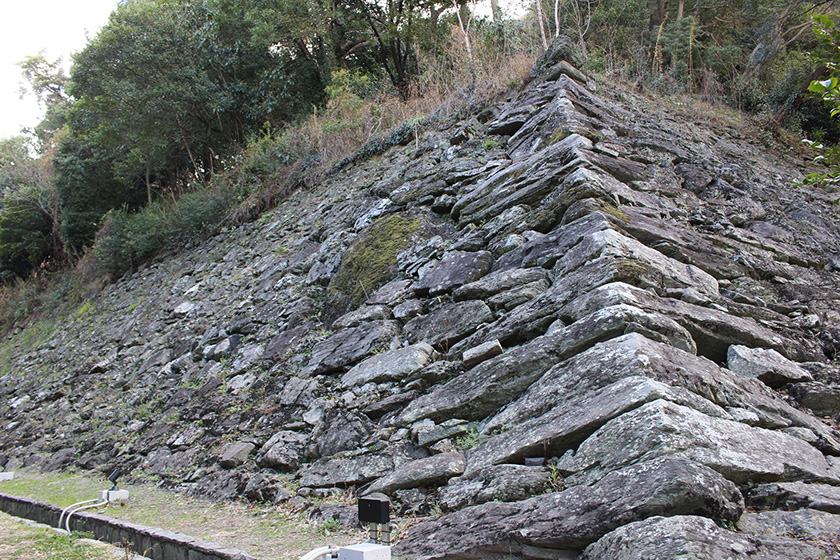 自然の石をほとんど加工せずに積み上げた石垣で、
