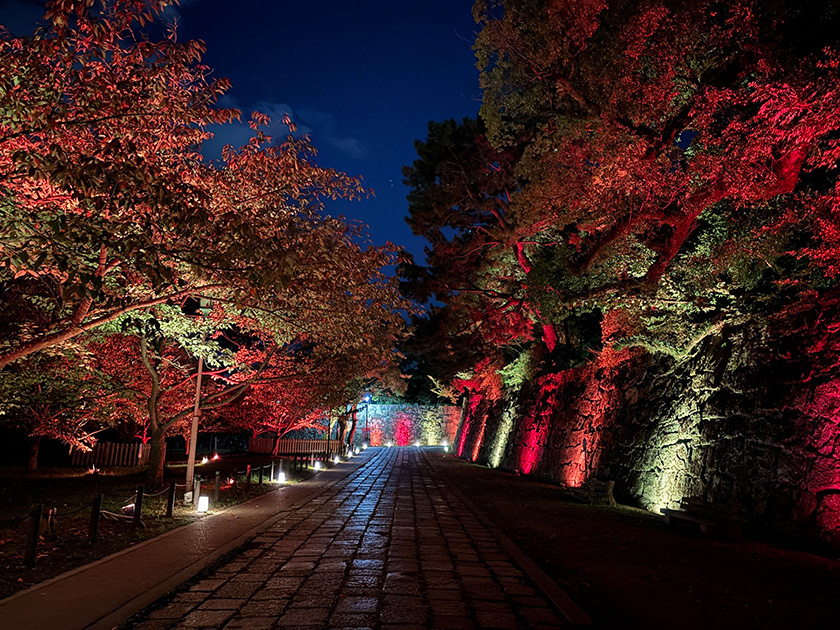 夜には城内をカラフルに照らすライトアップイベント