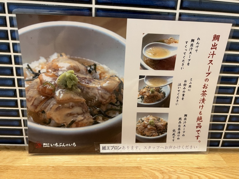 そしてセットの「ミニ鯛ゴマだれ丼」にラーメンのスープを入れると、お茶漬け風にも楽しめます。