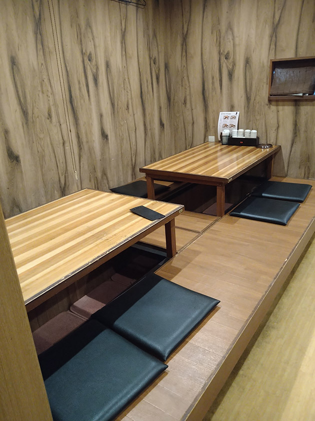 店内には、2人掛けのテーブル席が4卓、4人掛けの座敷席が2卓、カウンター席が3席あります。
