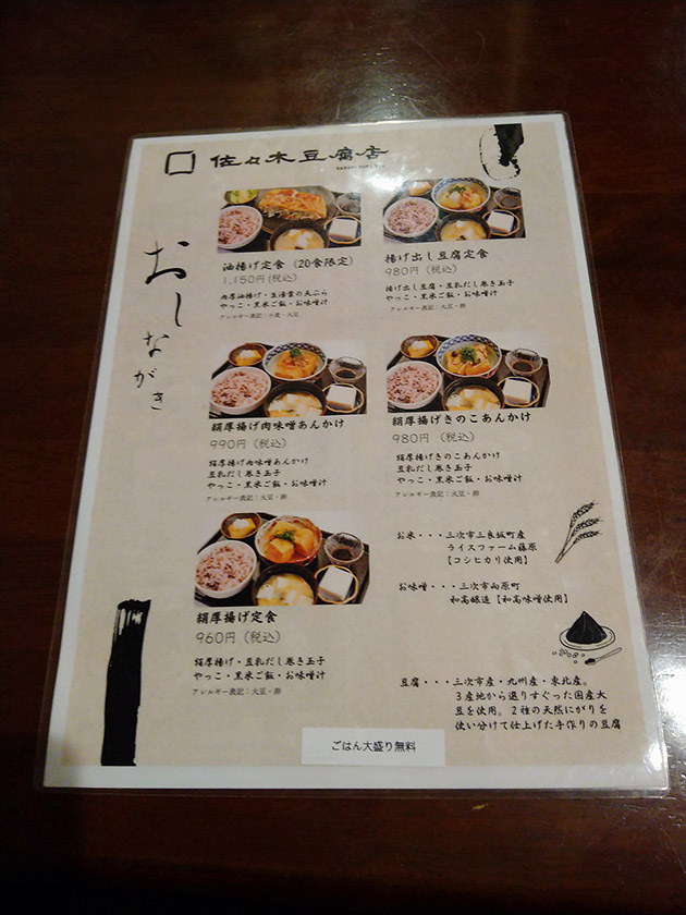 ちなみに、お豆腐やお総菜はテイクアウトも可能です(月曜のみテイクアウト不可)。
