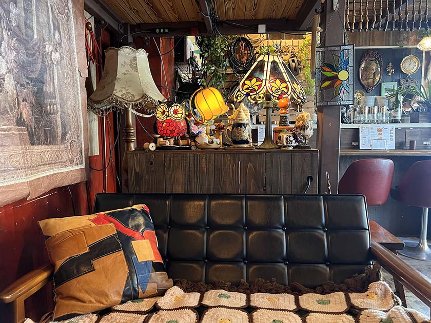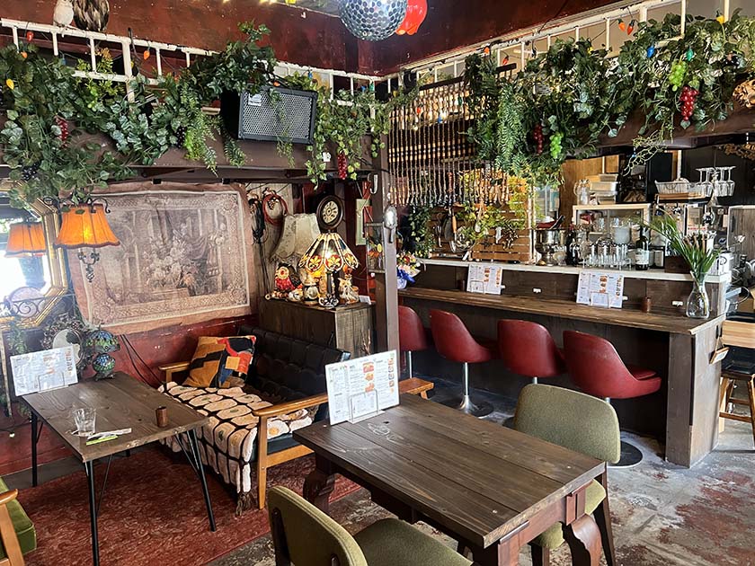 店内は、異世界に迷い込んだような雰囲気! アンティーク家具が印象的です。